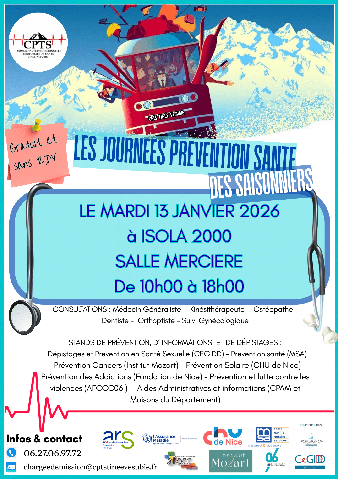 La CPTS Tinée Vésubie dans les stations du territoire 🩺Les Journées Prévention Santé des Saisonniers reviennent dans nos 3 stations de ski du territoire ⛷ : Auron, Isola 2000 et […]